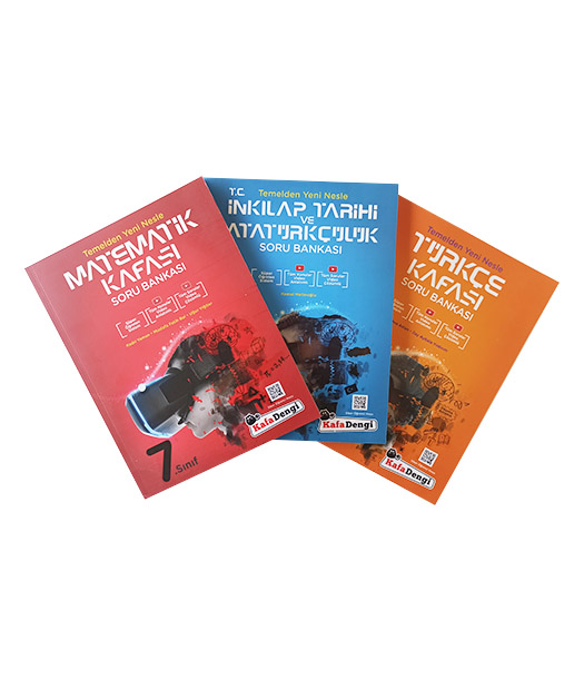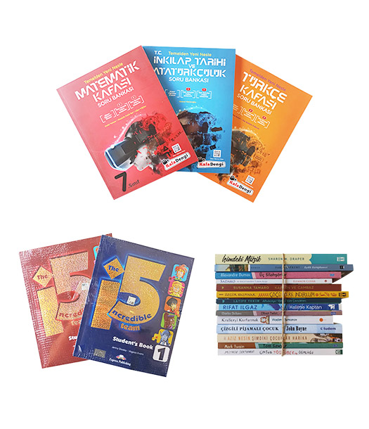 - Tüm derslerden (Matematik, Fen Bilimleri, Türkçe, Sosyal Bilgiler, İngilizce, Din Kültürü) 3’er adet soru bankası